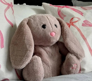 Mit 25–30 cm Höhe etwa so groß wie ein klassisches Kinderkissen oder ein Teddy, der genau in den Arm passt. Nicht zu groß, nicht zu klein – genau richtig zum Einschlafen. Die Hasen mit Reisverschlüssen sind jeweils 37cm (Hupsi) und 32cm (Hopsi).